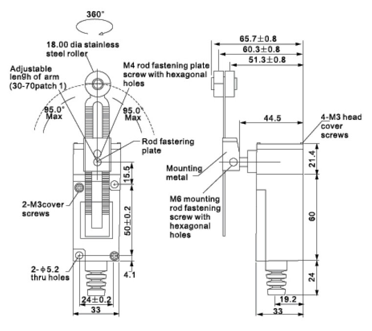 Концевой выключатель HL-5030 регулируемый роликовый рычаг