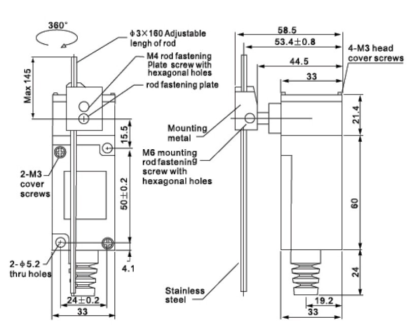 Габаритные размеры | 33×119,5...234,5×58,5 мм |