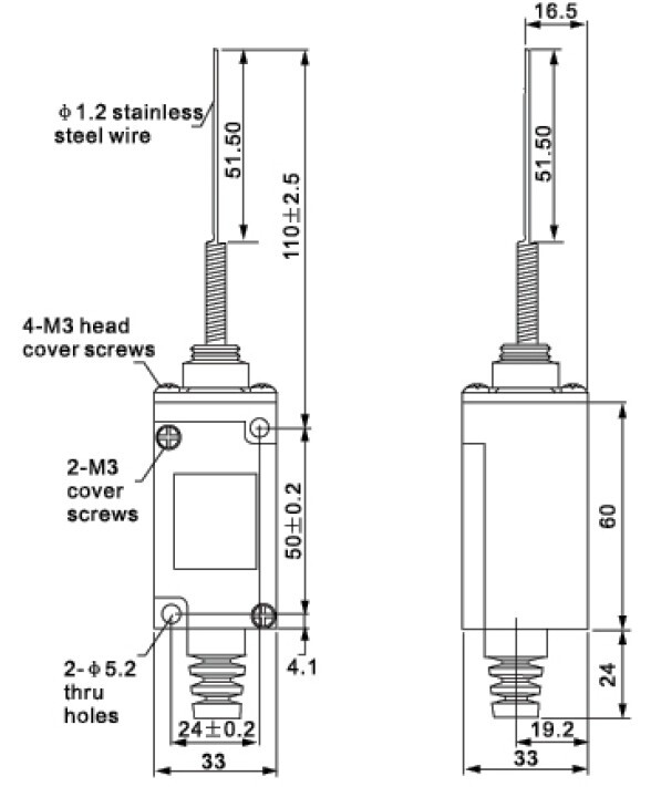 Концевой выключатель SHL-5330 - шток пружинный с утоньшением на отклонение