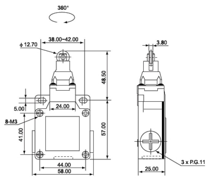 CSA-003 концевой выключатель, продольный металлический роликовый плунжер