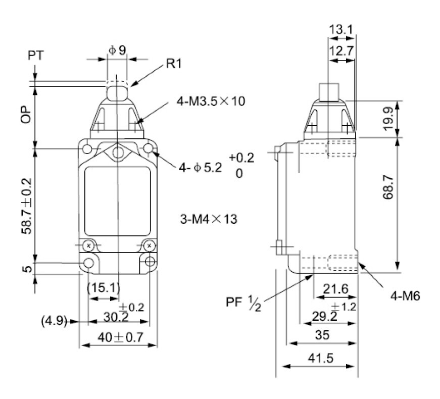 WL-D, Выключатель путевой с нажимным штоком, с купольным толкателем