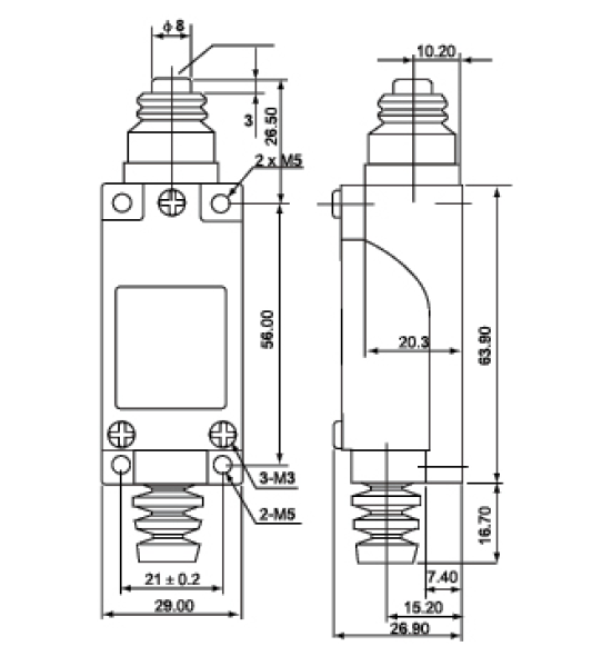 Конечный выключатель предназначен для контроля перемещения установок или частей установок.